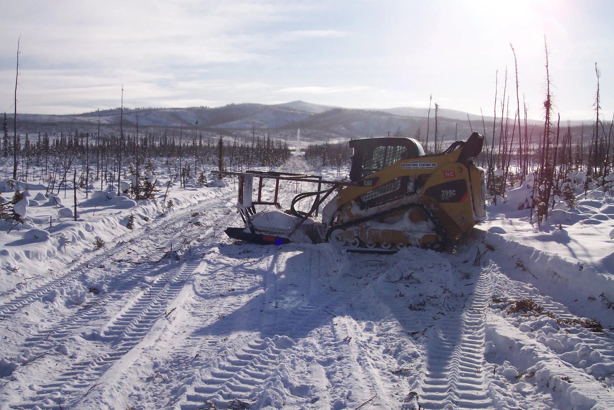 Need a new trail for dog mushing, land access or skiing? We can cut a minimum six foot wide trail quickly and easily. Weeks quicker than a chainsaw, and costing thousands less than a big hydro ax.